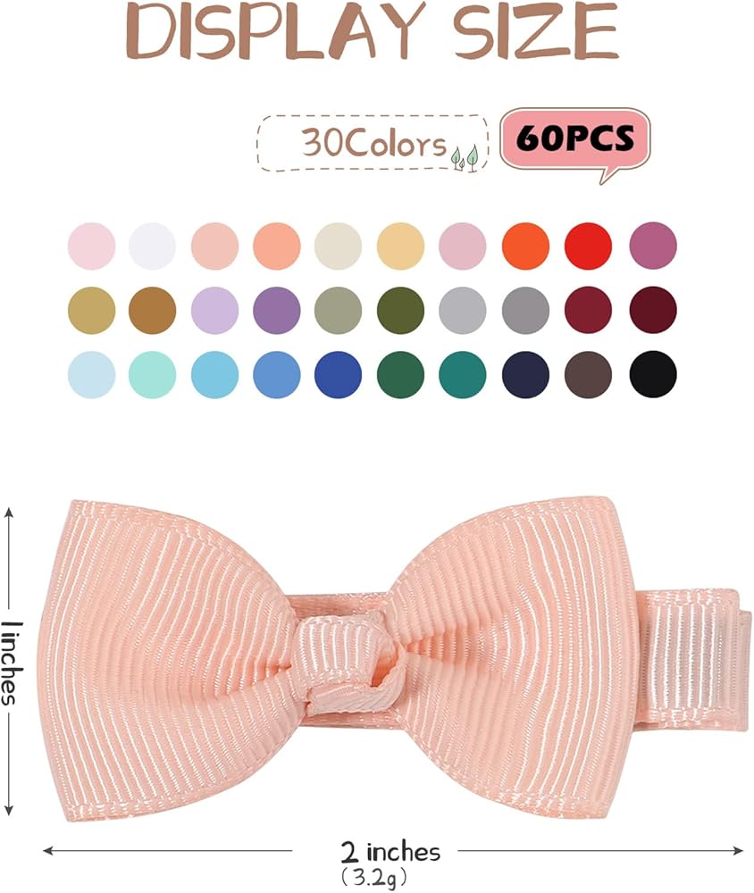 Perfect Size🎀 These 2 inch mini bow clips are perfect size for toddler and light weight. The bow hair clips can hold your baby's hair together and not hurt our baby's hair. If your baby doesn't like headbands,you can try these baby girl bows clips.