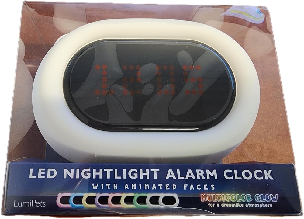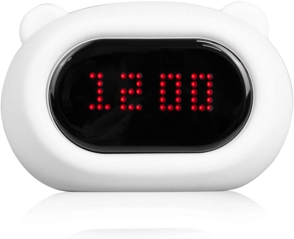 Lumipets LumiClock Bear Nightlight and Alarm Clock, Help Babies, Toddlers, Girls and Boys Fall Asleep and Wake Up Gently, Wake to Rise Color Sound Interface, Cute Display Faces, Tap to Change