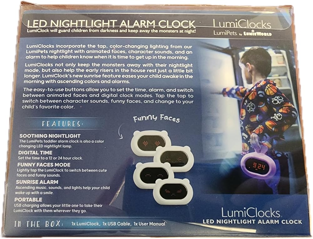 This infant and toddler alarm clock is easy to adjust and customize using the controls on the reverse side. It works just like any other alarm clock, with just a few extra features designed to comfort and delight kids of all ages. Your child can cycle through the gentle colors and fun faces with just a tap. LumiClocks are built to be sturdy and hold up to babies' and toddlers' tough love.