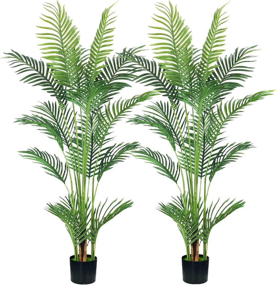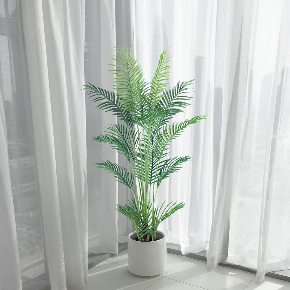 【Three Size Artificial Palm Tree】There are 4ft、4.5ft and 6ft fake golden cane palm tree for you to choose,the 4 ft has 9 realistic leaves ,the 4.5 ft has 15 realistic leaves, and the 6ft has 20 realistic leaves. after you receive, you need to simple assembly, Faux Palm tree have strong internal metal wires, so you can adjust the trunk to the shape as you like without worrying about the trunk breaking.