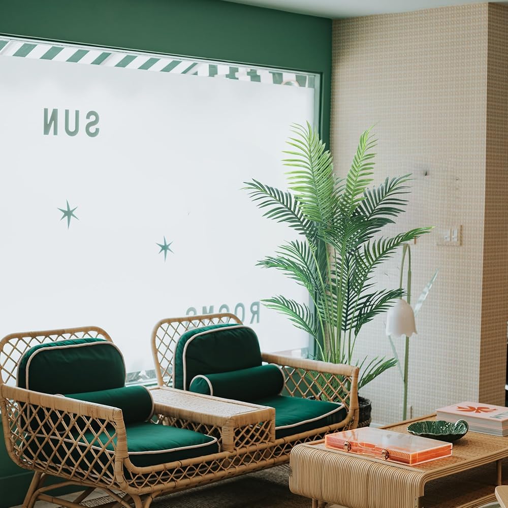【Realistic Tropical Artificial Tree】Artificial trees are all selected from nature,this palm tree leaves are slender and smooth,like feathers in appearance, and the petiole is slightly curved.its leaves can be evergreen all year round,help you feeling romance and beauty of nature without leaving home.