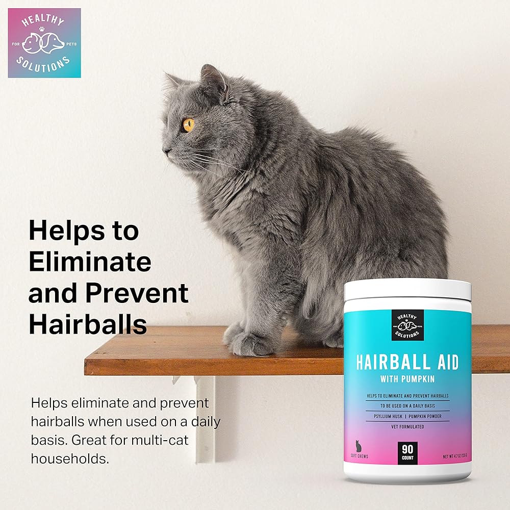 Hairball Remedy for Cats - 90 Anti Cat Hairball Soft Chews Help Control & Prevent Hair Balls Fiber from Pumpkin Treats Hairballs Consistently - Made in USA