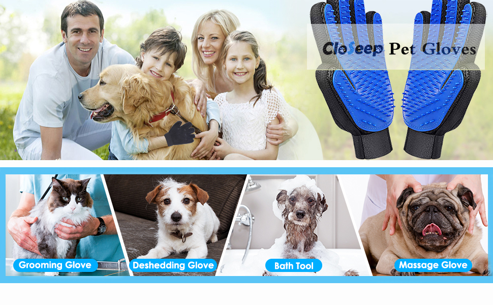 قفاز تنظيف الكلاب من كلوسيب، قفازات فرشاة تدليك الحيوانات الاليفة لازالة الشعر المتساقط للقطط والخيول، تصميم بخمسة اصابع للفرو الطويل او القصير جيد التهوية، سهل التنظيف، مقاس عالمي - زوج واحد..