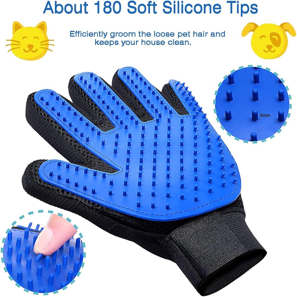 【صحية ولا تسبب ضرر】: قفازات العناية بالحيوانات الأليفة مصنوعة من السيليكون الناعم دون إزالة مؤلمة للفرو أو خدش الجلد. لا يحتوي على مواد قد تسبب تلف الجلد.
