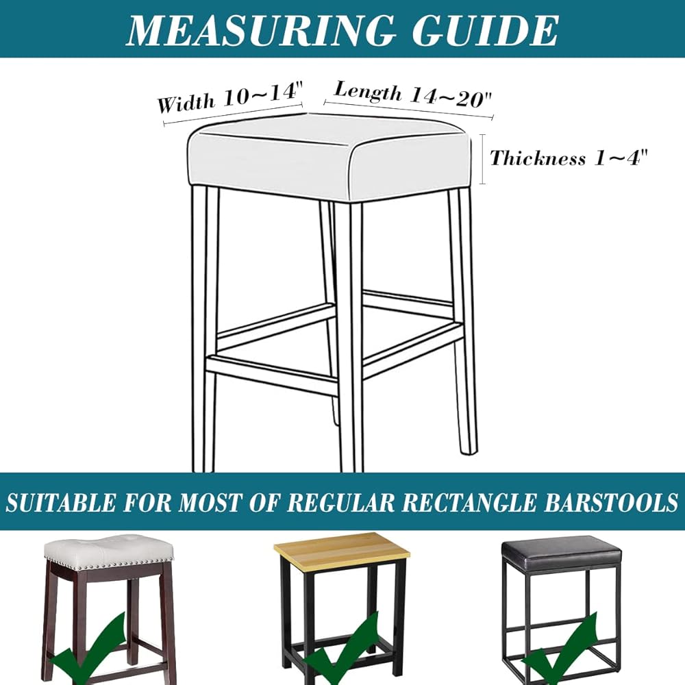 MATERIAL & SUPER STRETCH: Our rectangle bar stool covers made of 90% Polyester and 10% Spandex. This soft fabric makes these bar stool slipcovers soft and comfortable, anti-wrinkle and not shrink, not fade. Give old or damaged chair a new look.