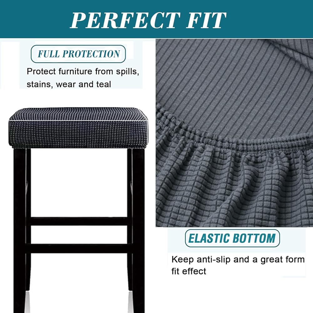 HFCNMY Stool Covers Rectangle,2 Pack Stretch Bar Stool Covers Jacquard Washable Counter Saddle Seat Cover with Elastic Band for Wooden Metal Bench(Dark Grey)