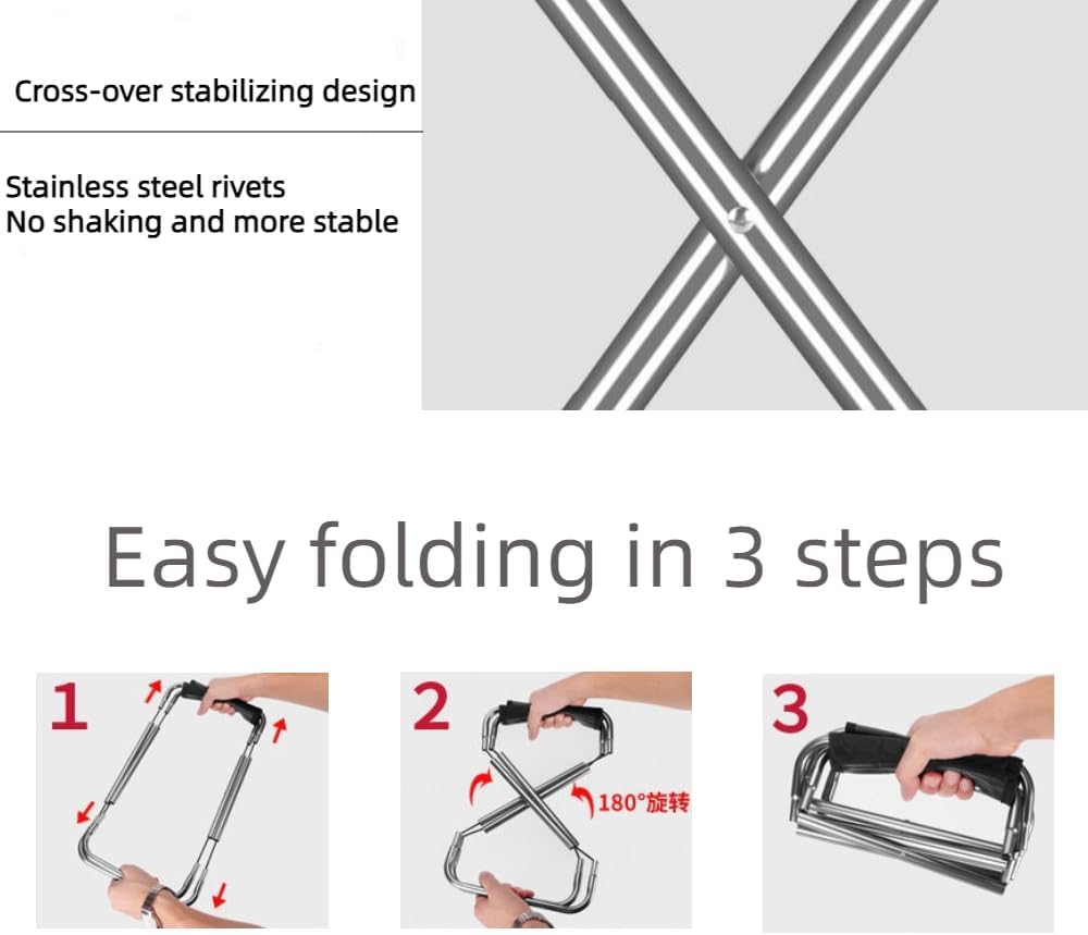 FOLDABLE: The foldable camping chair has an X-shape design, and the thick aluminum alloy tube frame can hold up to 200lbs/100kg. The collapsible aluminum tube and shock cord construction allows for quick folding.