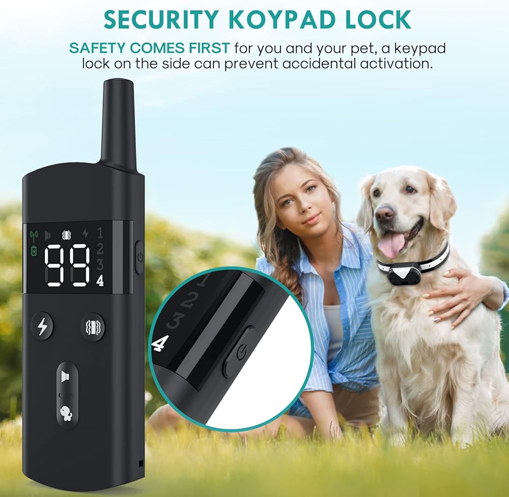 2600FT Remote & Security Lock: Come with security keypad lock, it significantly prevents any accidental pushes while carrying the remote. Up to 2600Ft range allows you to train your dogs easily indoors/outdoors.