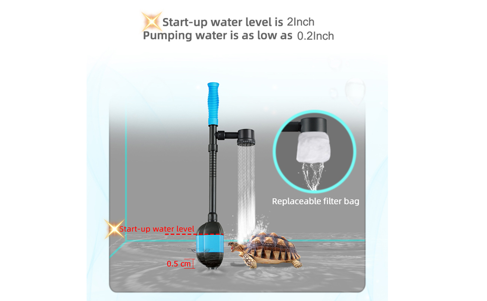 Super Powerful:30W,110V/60Hz.It helps you quickly change the water, add water, and suck up dirt and impurities in your fish tank.