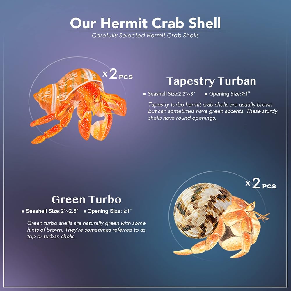 PERFECT GIFT FOR HERMIT CRAB - 4 shells, 2 types. Hermit crabs can choose different conch shells according to their preferences, color, body size, and growth period.
