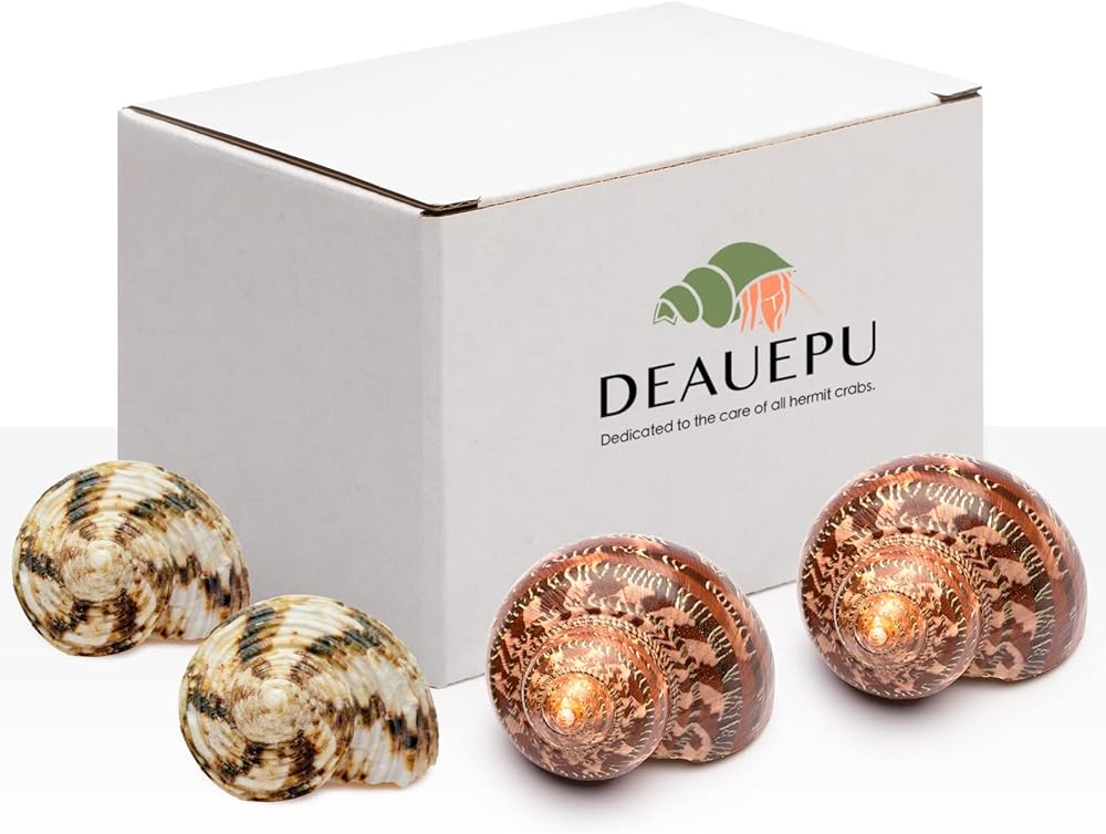 Natural Hermit Crab Shells 4PCS (2 Types) | Opening Size Approximately 1", Seashell Size: 2"-3" | Good for Medium to Large Crabs | Hermit Crab Tank for Décor | No Paint or Dye