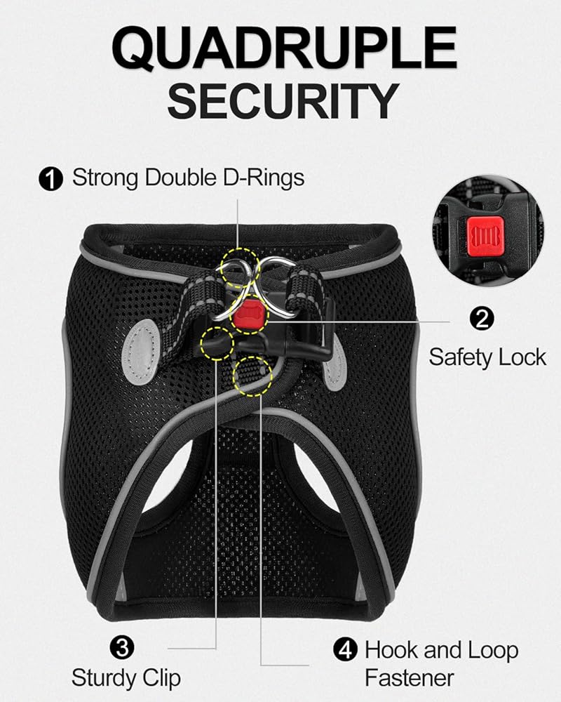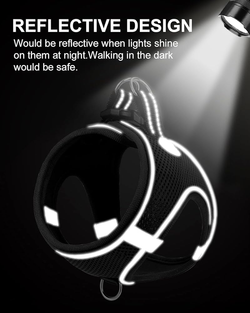 [Breathable Air Mesh] Designed with soft, comfortable, lightweight, easy to clean and quick drying mesh fabric, this harness allows the dogs' body temperature to circulate outward in multiple directions through the vest. It will not be suffocating for your active and playful pets.