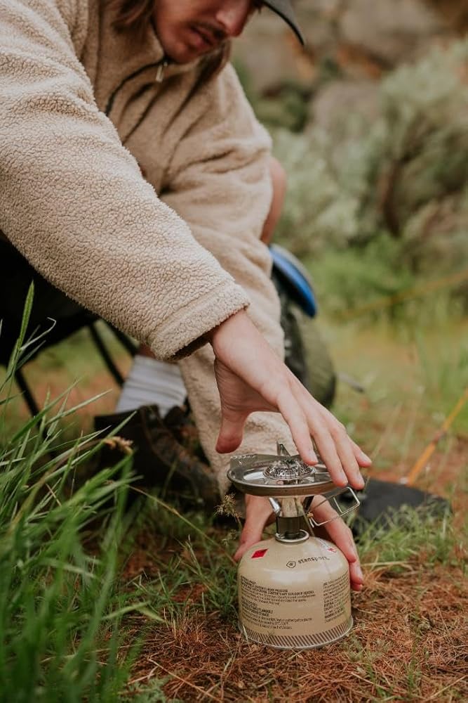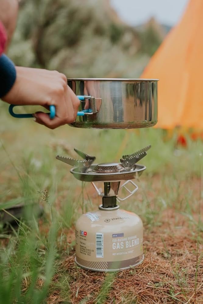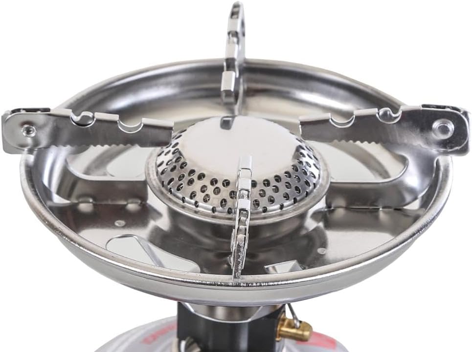 The Stansport Single Burner Propane Stove has an anti-clog burner and 10,000 BTU's. It's 7.5" diameter grid will support most pots and pans. Regulator has an On/Off control knob. The Dura Base with tip-resistant feet holds a 16.4 oz disposable propane gas cylinder (NOT INCLUDED).