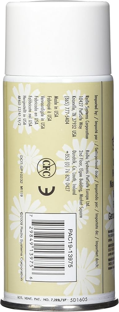 Safe, unscented, harmless spray surprises your pet, reminding him to stay away from the off-limits area