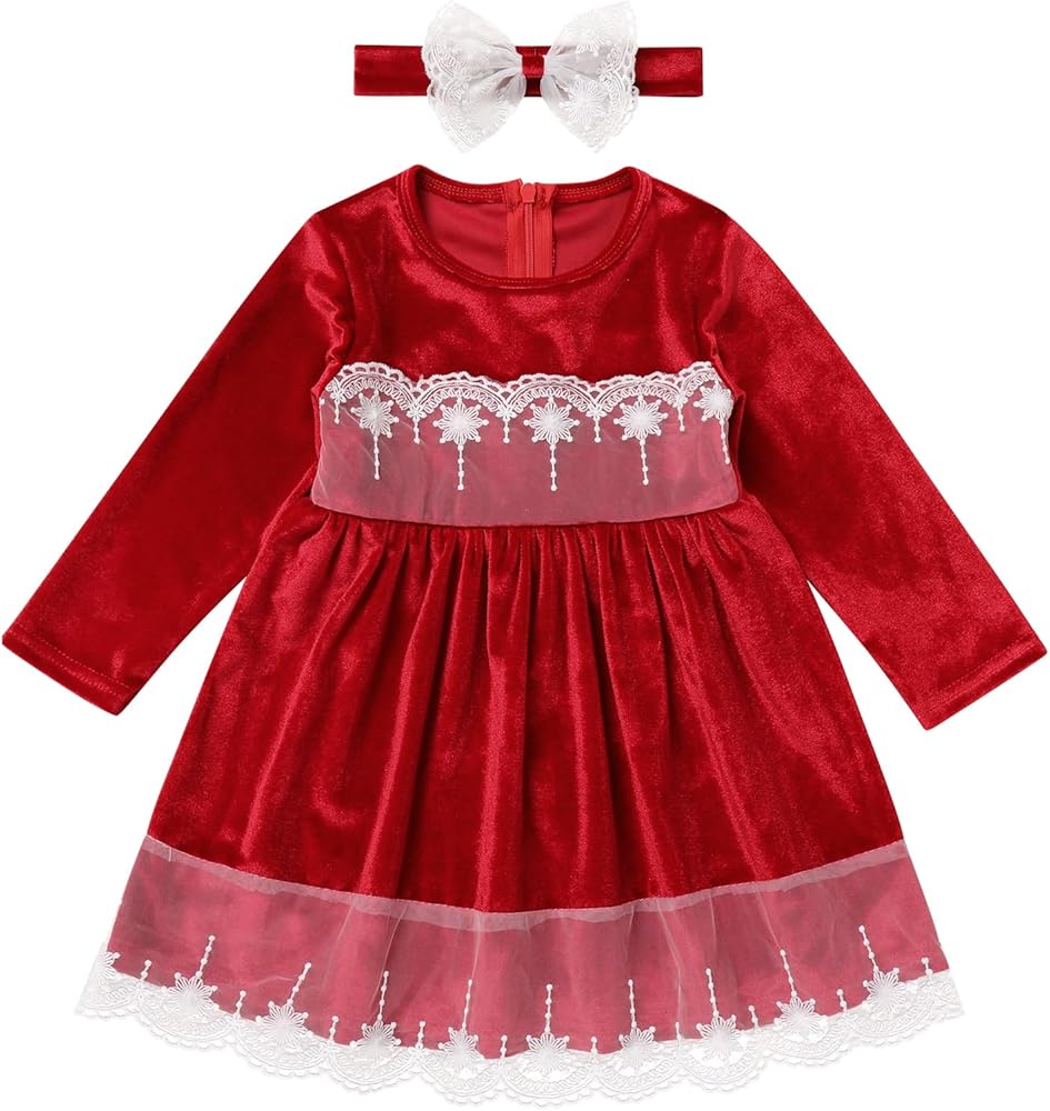 ✤ Size: Toddler baby girls Christmas dress vintage long sleeve velvet a-line dresses fit for 9-12 months, 12-18 months,18-24 months, 2t-3t, 3t-4t, 4-5t infant toddler girls. For more details, please refer to the SIZE CHART. Please feel free to contact us if you have any question about our product, we will response you within 24 hours.