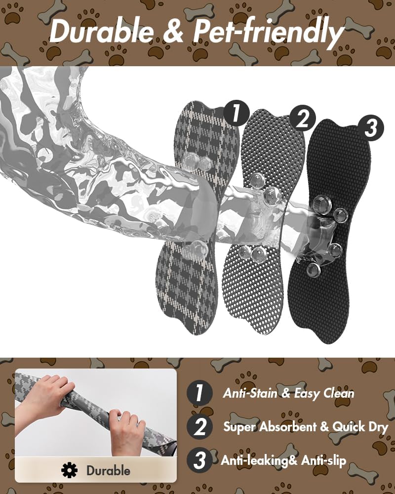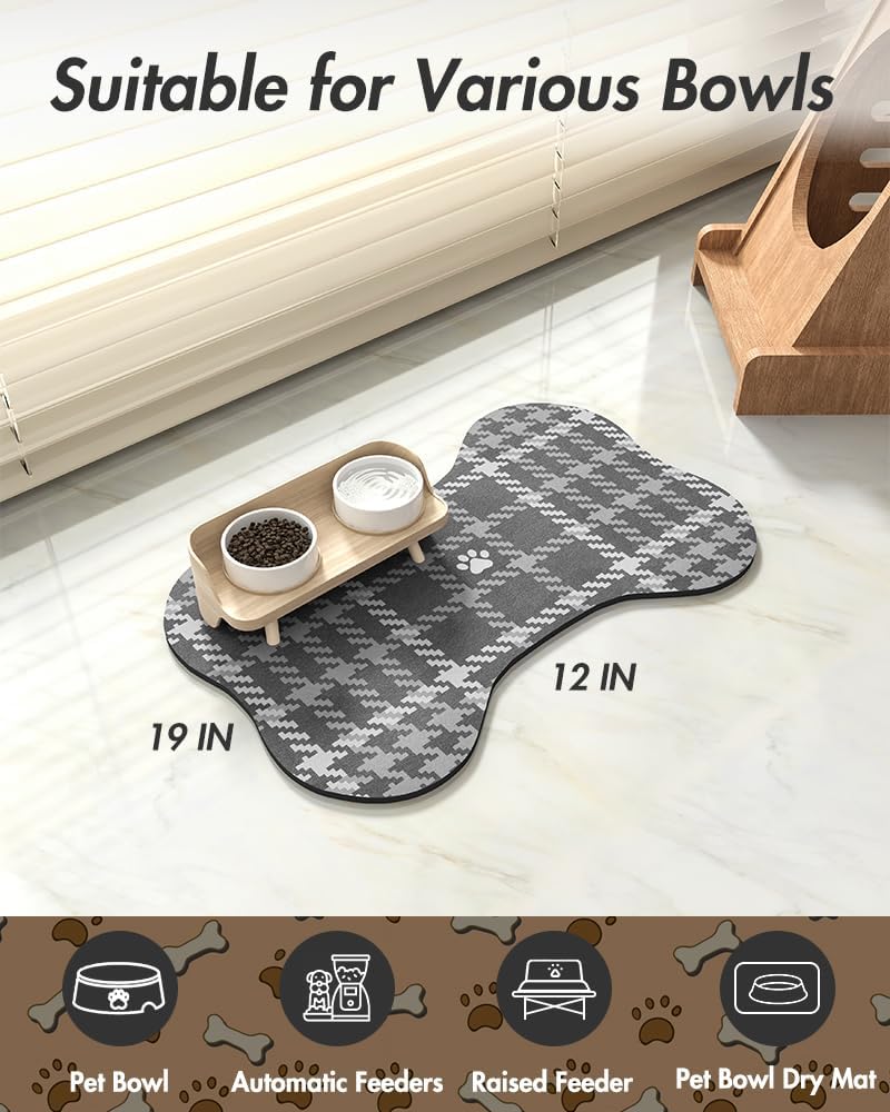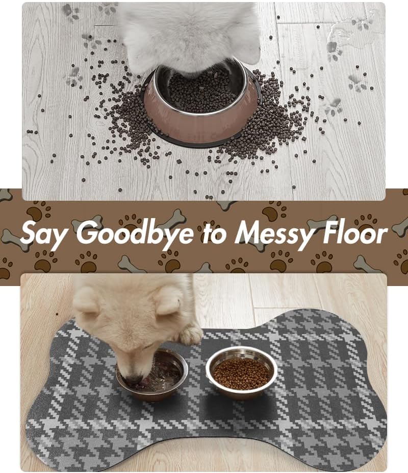 Pet Supplies: This absorbent mat for dog water bowl suits for all pets, puppy, cats and dogs, can be used under raised feeders,cat fountains,automatic feeders, and dog water bowl for messy drinkers. This dog dish mat has enough traction that pet is able to comfortably stand and eat, especially some dogs with inconvenient legs and feet. Cute shaped pattern pet feeding mat can add a fun and playful touch to your dog's feeding area. A great dog products to show your love for your furry friend.