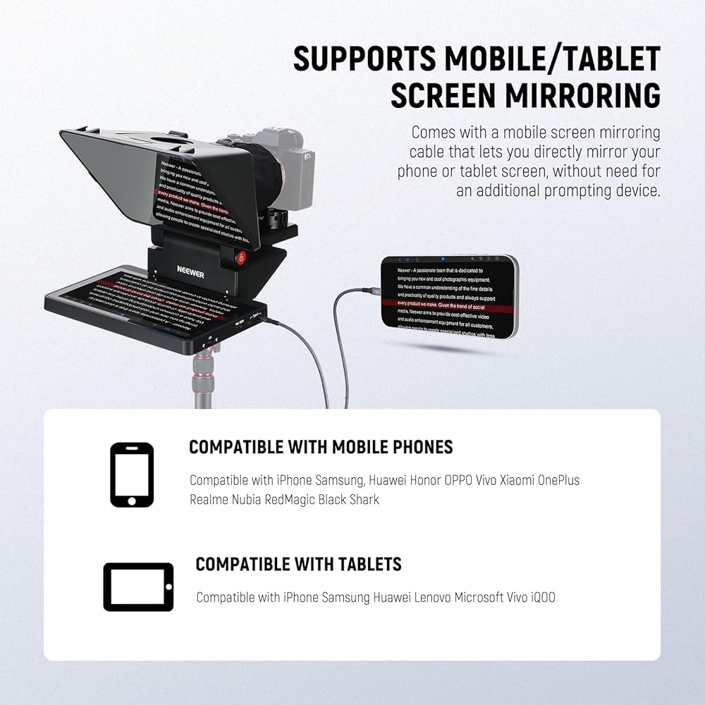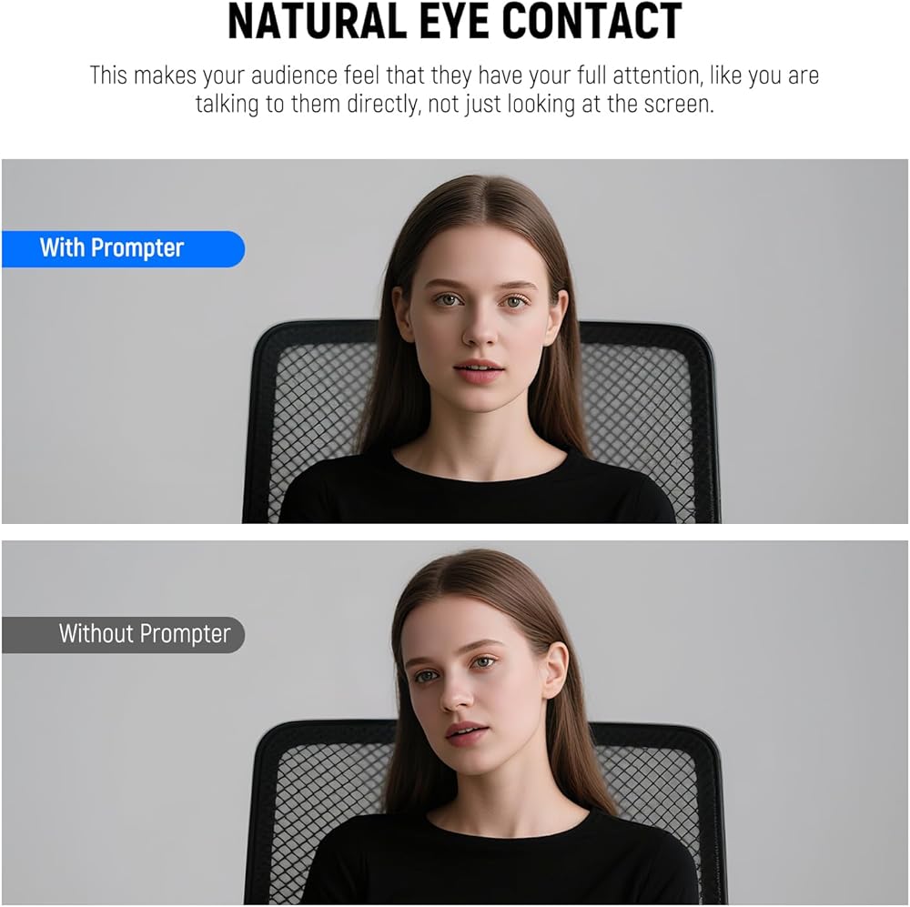 【Foldable & No Assembly Required】 The X16 Teleprompter comes with an integrated design, ready to use straight out of the box with no assembly required. It enables you to read every word of your script fluidly while keeping eye contact with the audience—whether you are delivering a speech, giving an online course, or recording a tutorial