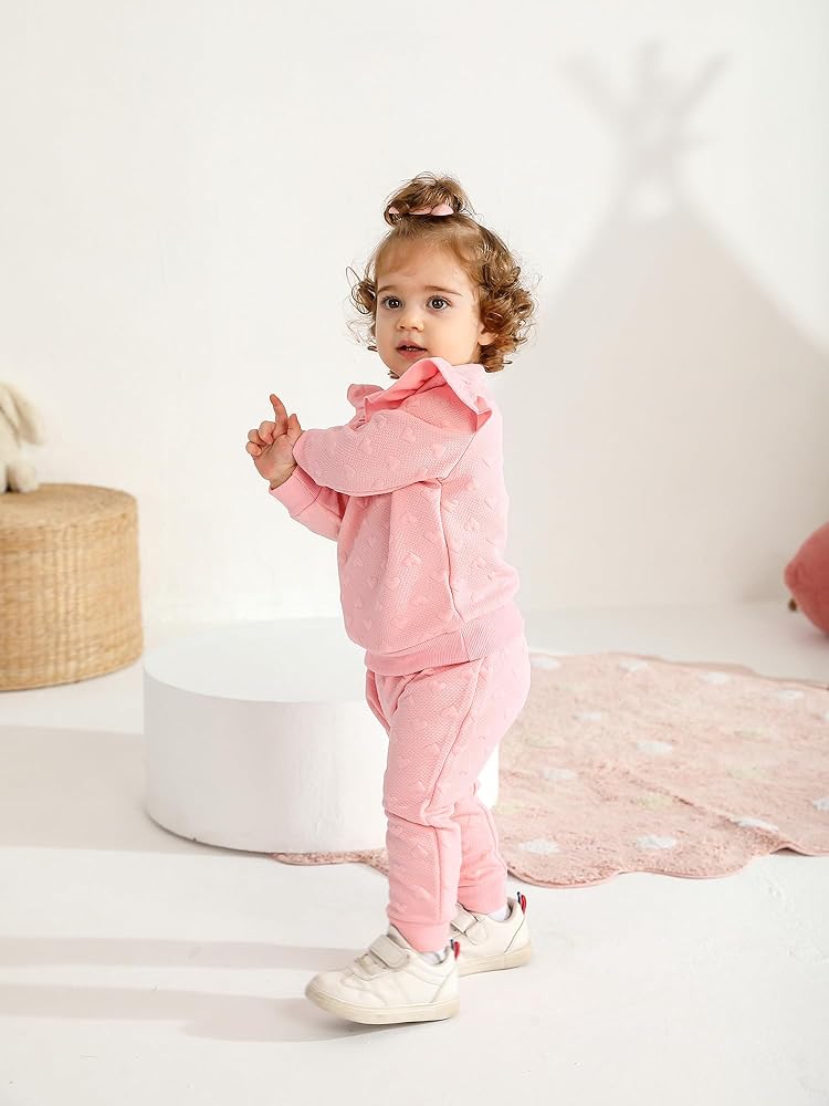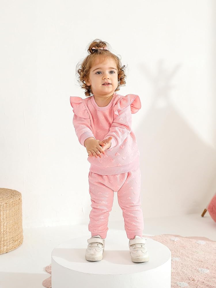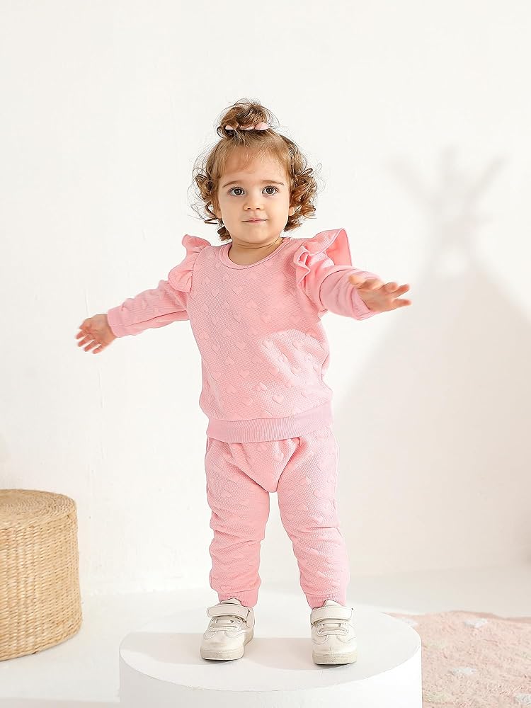 - Design: Love heart textured tops with pants,make your little girl more fashion-forward and lovely.