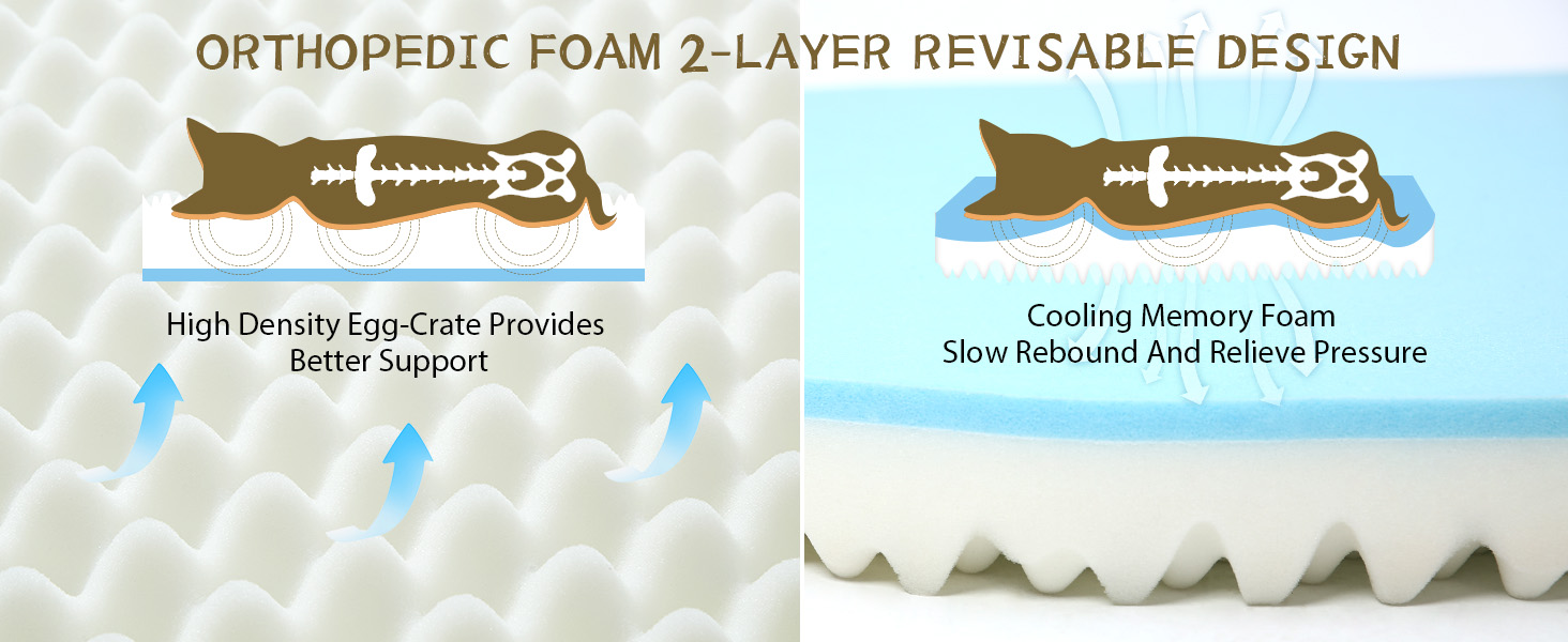 CertiPUR-US Memory Foam - Our orthopedic dog bed is made of a combination of high-density egg-crate foam and CertiPUR-US certified memory foam, which can help distribute weight evenly and provide perfect joint support to relieve pressure.