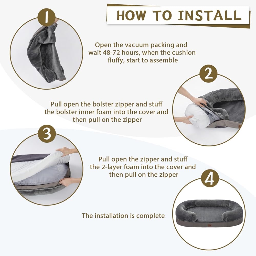 Anti-slip Bottom - Upgrade anti-slip bottom can prevent your large dog bed from moving when your pets step on and off to provide a secure area for them.