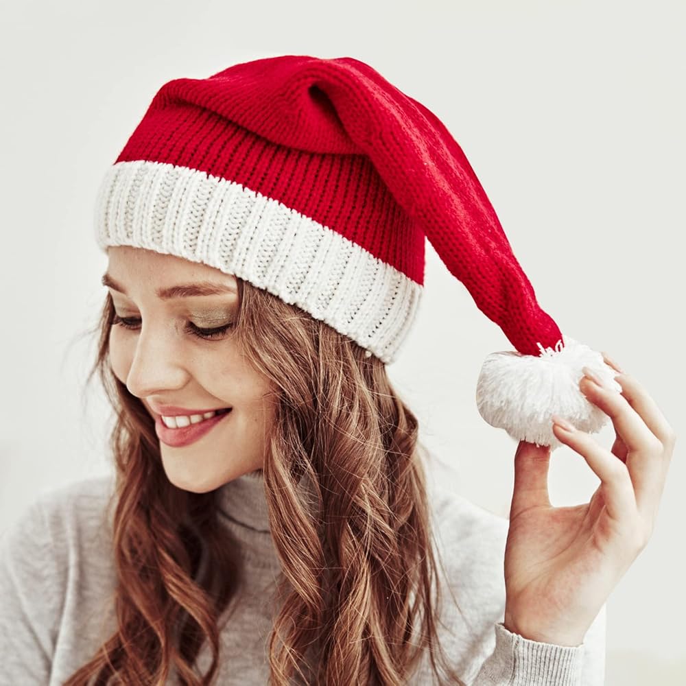 Here you have a Santa beanie pom knitted hat to wear during the holidays.