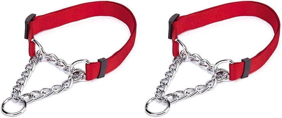 Featuring the convenience of adjustable sizing paired with the safety of a limited range, this martingale collar is a good choice for pet parents looking for a safe, gentle way to train on leash. It works by adjusting in size as you apply pressure to the leash, giving your pet the signal to slow down without choking. Unlike standard choke collars, this style features a limited closure design, which guarantees that it won't injure your pet. Several sizes are available to suit your pup's neck size.