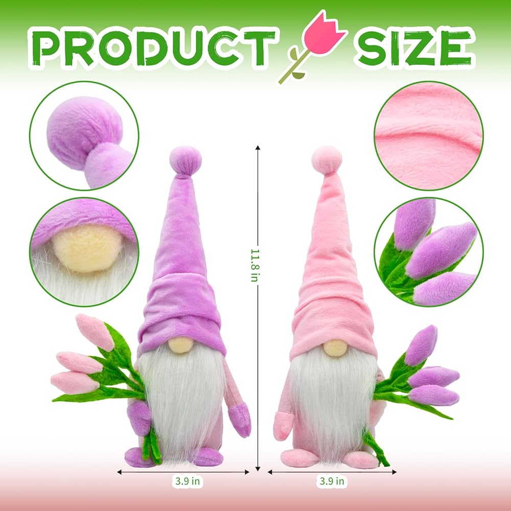 【Premium Material & Handcrafted】The Spring Lavender Gnomes are made of plush and felt by professional artisans.The hat is made of premium Plush material with purple buffalo check, vivid lavenders, Purple Knot, environment friendly.