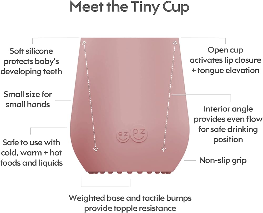 ezpz Tiny Cup (Blush) - 4 months+ - 100% Silicone Training Cup for Infants - Designed by a Pediatric Feeding Specialist - Baby-Led Weaning Essentials & Baby Gifts