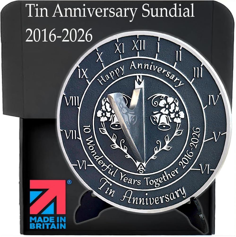CELEBRATE THIS AMAZING MILESTONE - 10 wonderful years together, what a gift. To match that opt for a solid aluminum Tin Anniversary sundial gift handmade in the UK. Grab the gift everybody will wish they'd found first.