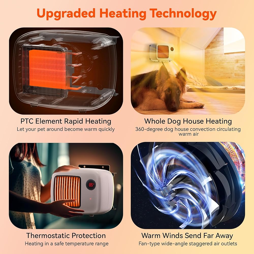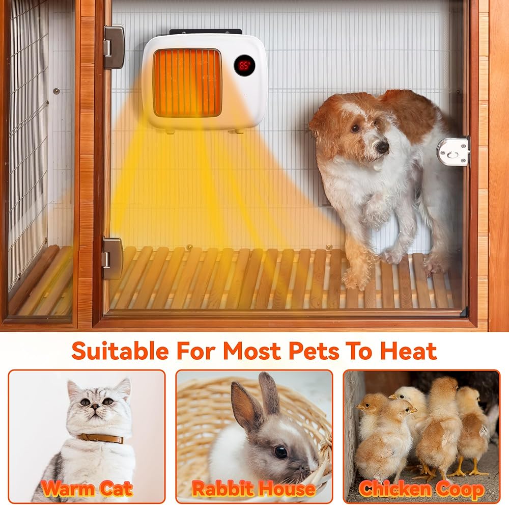 • 🔥【Wide Range of Applications】🔥: the pet house heaters are ROHS certified and have passed the UL 1278 test, with PTC heating element, flameless and high thermal efficiency, not only for outdoor dog houses, but also for chicken coops, rabbit hutches/cages, and pet pigs to help keep them warm through the winter, and are also nice for newborn, pregnant pets and older dogs