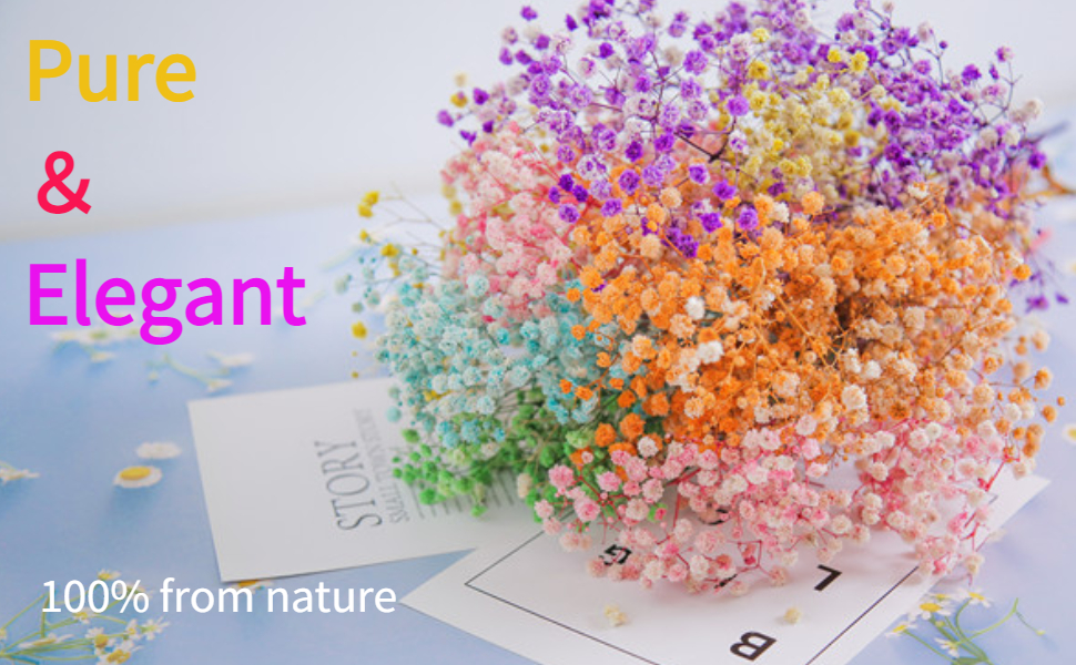 Natural, Unwithered and Easy to Take Care of: The Baby's Breath Flowers are collected from farms deep in the mountains of Kunming. They use advanced preservation and drying technology from Japan to keep the flowers soft and color. The Baby's Breath doesn't need water, sunlight and fertilizers, it needs to avoid sun exposure, will never Will wither and fall down.