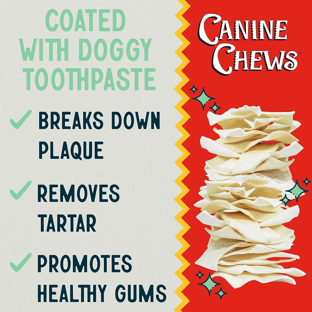 🐾 DOG RAWHIDE Canine Chews proprietary dental formula coated onto fresh rawhide chews. Home safe without staining
