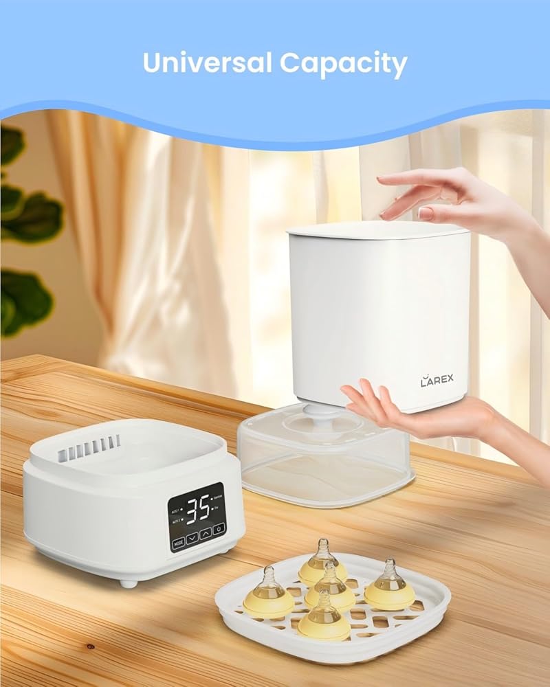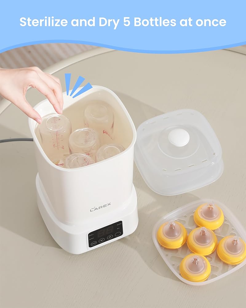 معقم ومجفف زجاجات الأطفال من لاريكس، معقم زجاجات الأطفال بالبخار الكهربائي المدمج، معقم زجاجات الأطفال ومجفف لزجاجات الأطفال واللهايات وأجزاء مضخة الثدي وألعاب التسنين