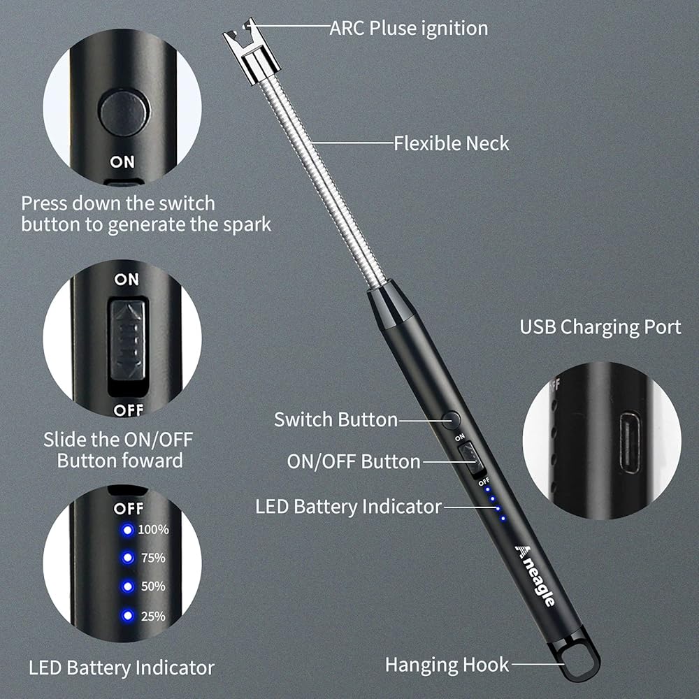 【Windproof and Plasma Technology】:Aneagle updated candle lighters with windproof design can be used it in most conditions, which is an ideal for outdoor use.