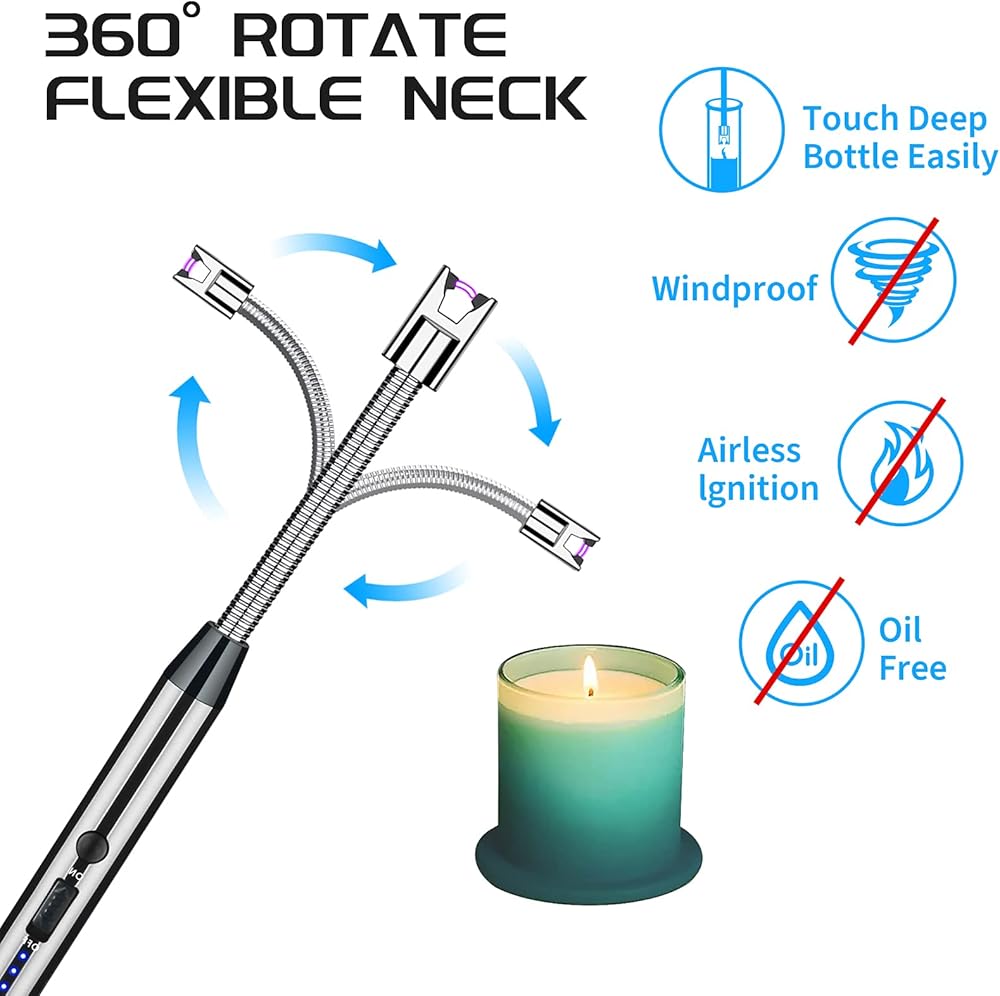 Candle Lighter Rechargeable 2 Packs Electric Arc Lighter for Candles with Led Battery Display Screen and Long Flexible Neck USB are Applied to Light Candle Cooking Fireworks Flame