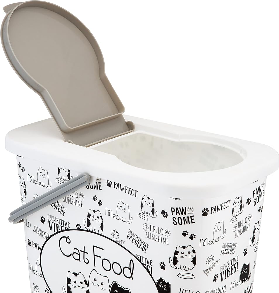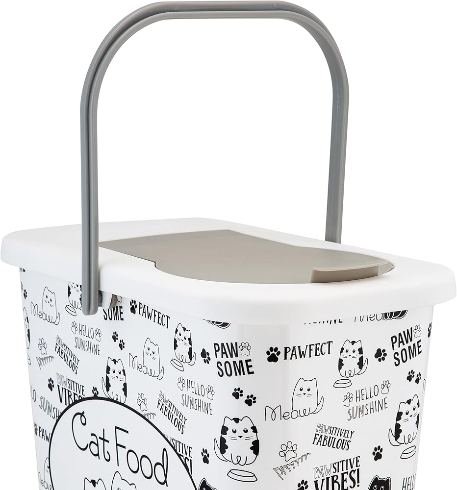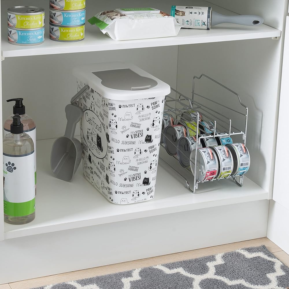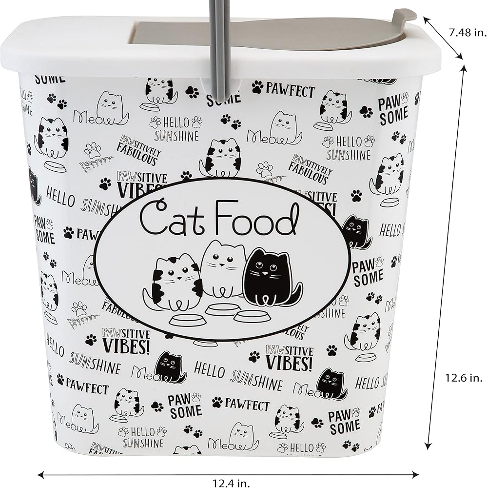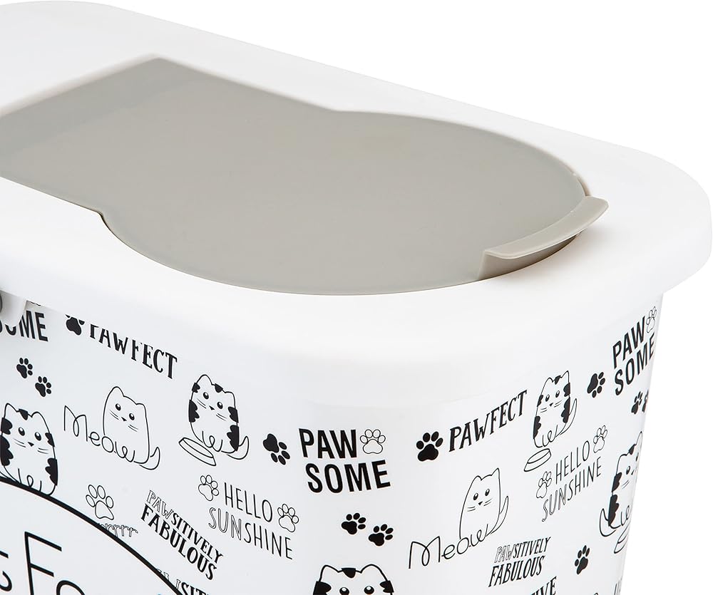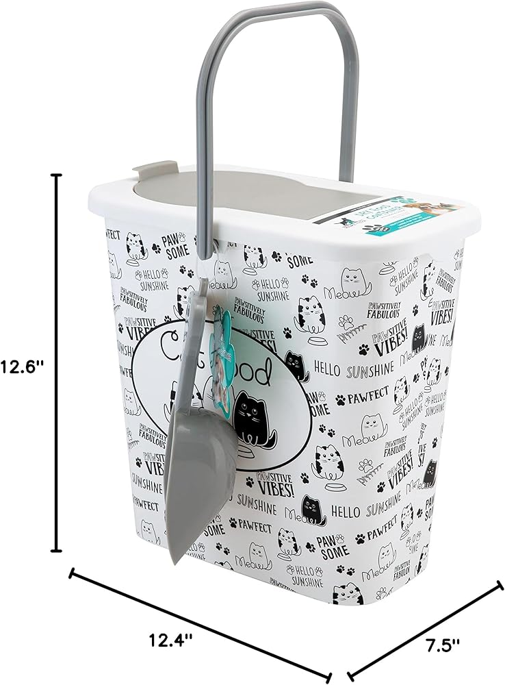 Keep your 4 legged friends dry food fresh with the Pounce + Fetch container. The container holds 3 gallons of dry food at a time and designed with a flip top lid making it easy to open and close. An included scooper conveniently helps serves the food. The printed container allows you to get rid of the messy bags pet food comes in and neatly organize your pets food with the rest of your home. The best part of this is every purchase a portion of the proceeds are donated to PET RESCUE!