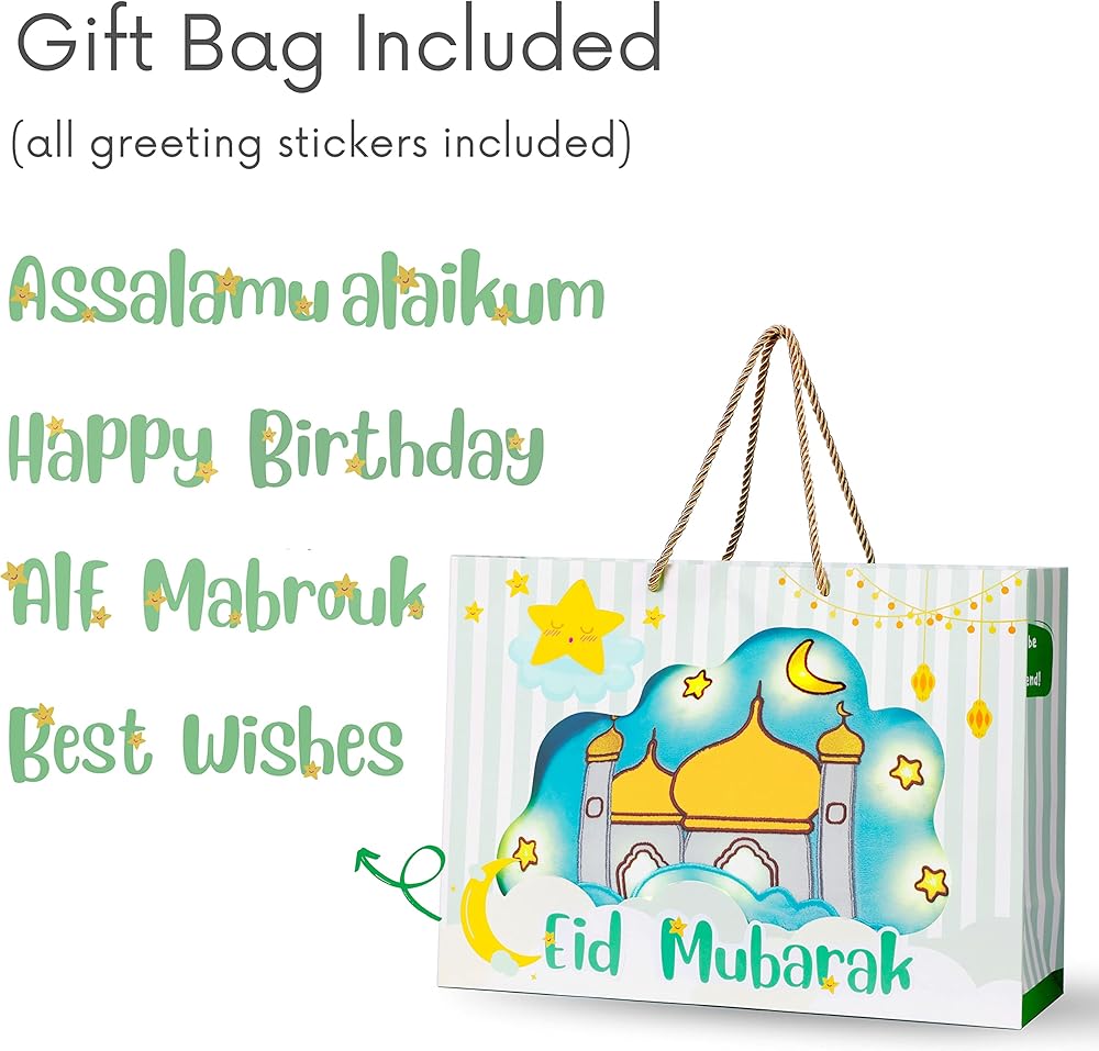 - Special Gift Bag🎁! Gift bag with greeting words: E1d Mubarak, Alf Mabrouk, Assalamu Alaikum, Happy Birthday and Best wishes.