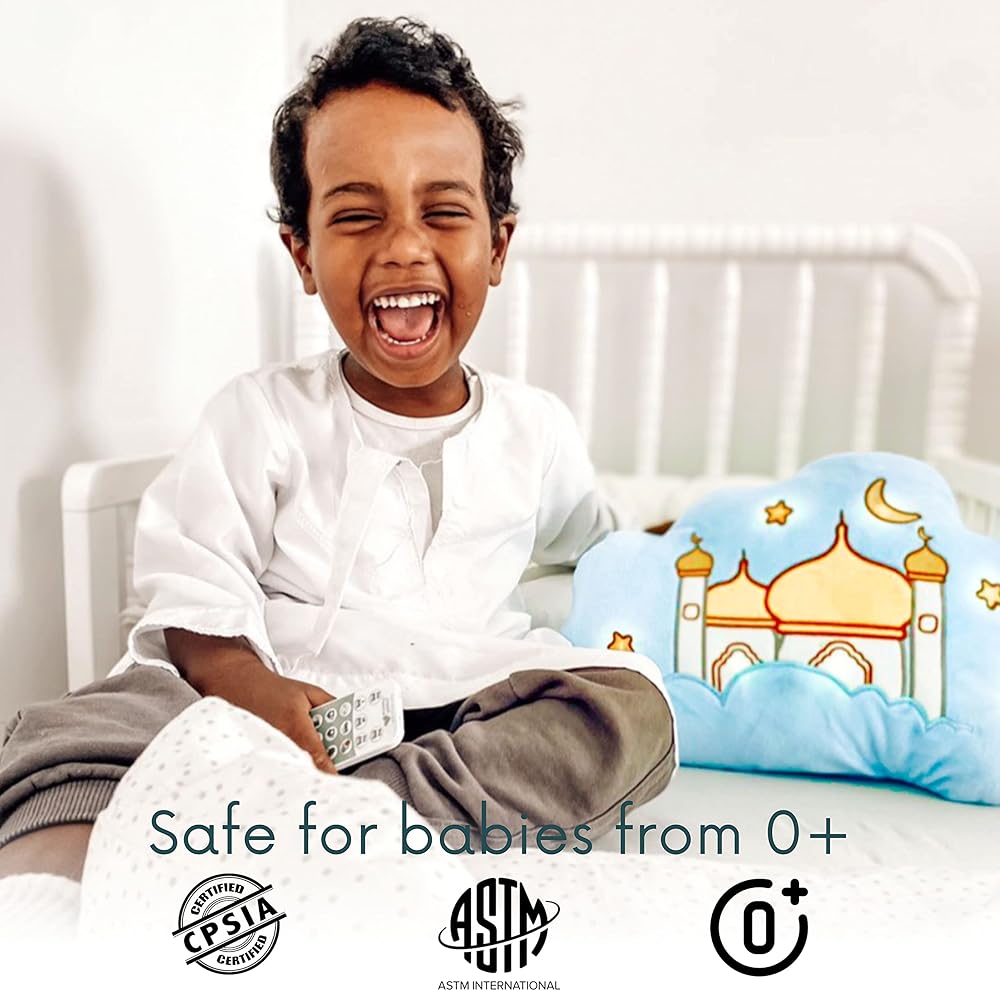 Mommy Yasmin - Soothe & Glow Talking Cloud | Muslim & Islamic Toy | Eid Gift | Quran & Dua | Interactive + Relaxing | Remote | for Baby + Toddlers + Kids (Blue)