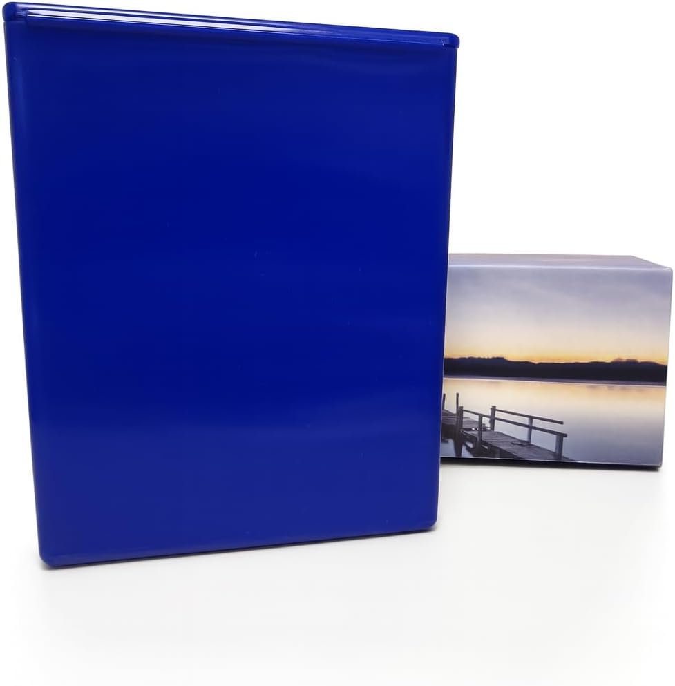 The Mainely Urns Temporary Travel Cremation Urn is an American-made urn that is TSA approved for airline travel making it an ideal choice if you have to travel by air with your dearly departed loved ones cremains. This is our most recommended temporary cremation urn because of because of its durability. This is an all inclusive black temporary urn kit which includes a matching white cardboard travel box, plastic cremains bag, and a twist tie.