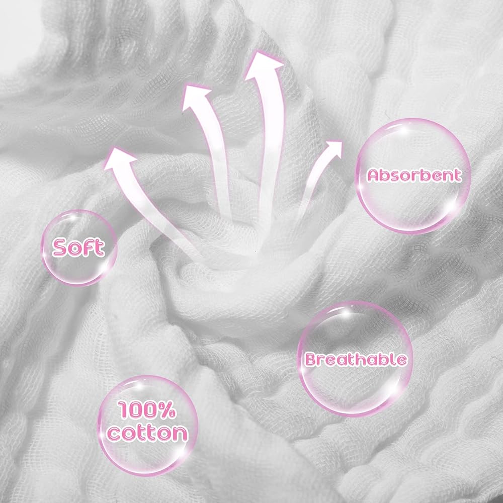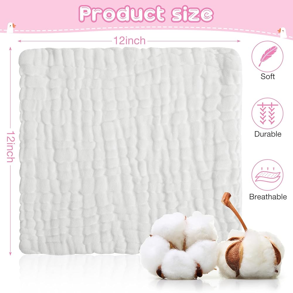 Each microfiber baby washcloth features 6 layers, thick enough to absorb liquids, easily wipe off water, provide comfy using experience.