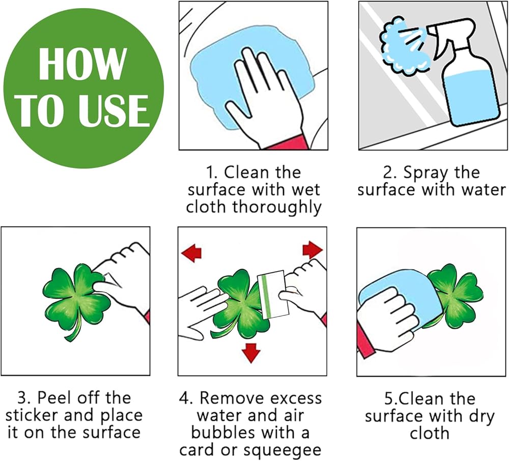 No Adhesive Home Decor: These window decors are thin static clings, which do not require additional glue or tape, and can be easily attached to a smooth and dry surface. Just remove the sticker and paste it on the surface of cars, trucks, glass, mirrors, windows, glass vandal-proof doors and bathroom surfaces; and use a card to squeeze out air bubbles from top to bottom. It is easy to attach to your window and remove without leaving sticky residue