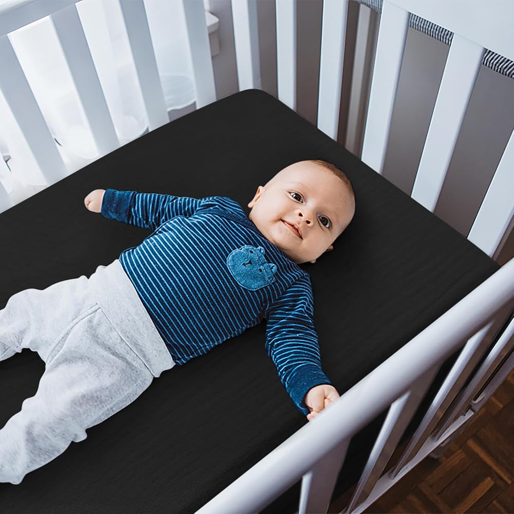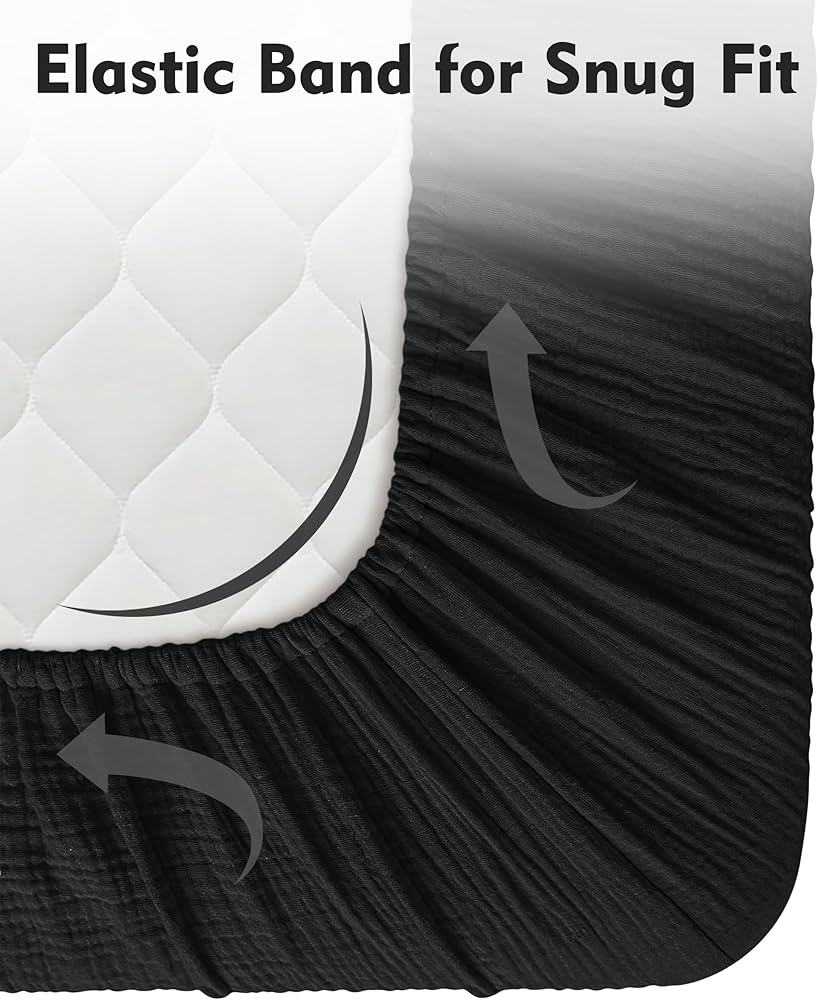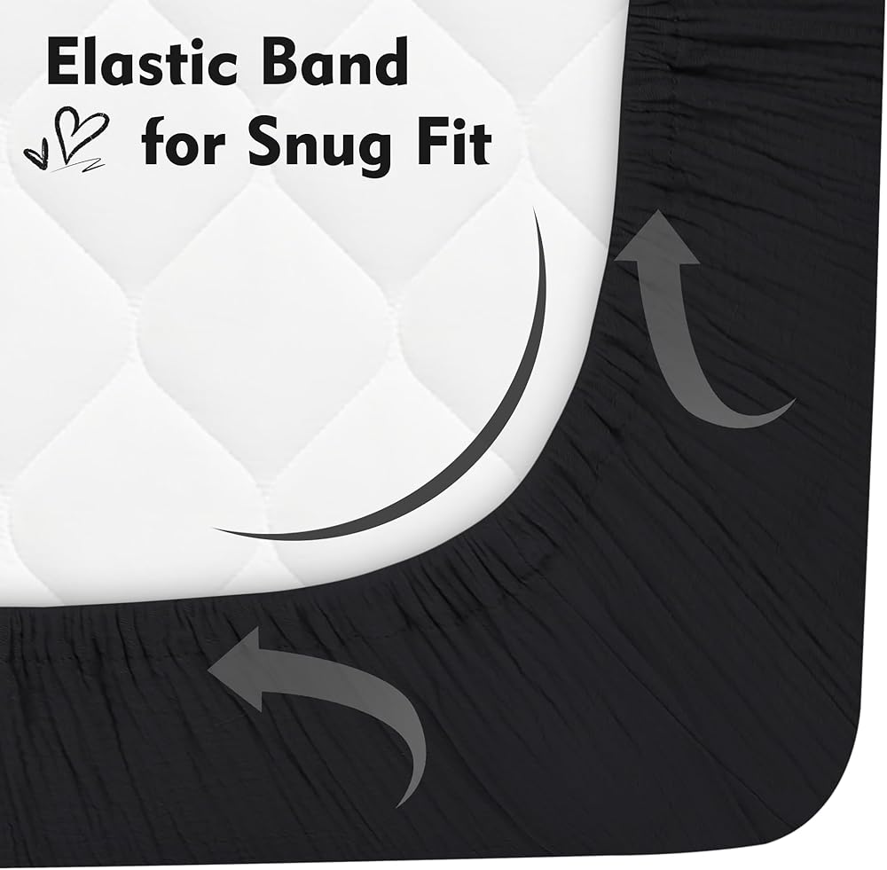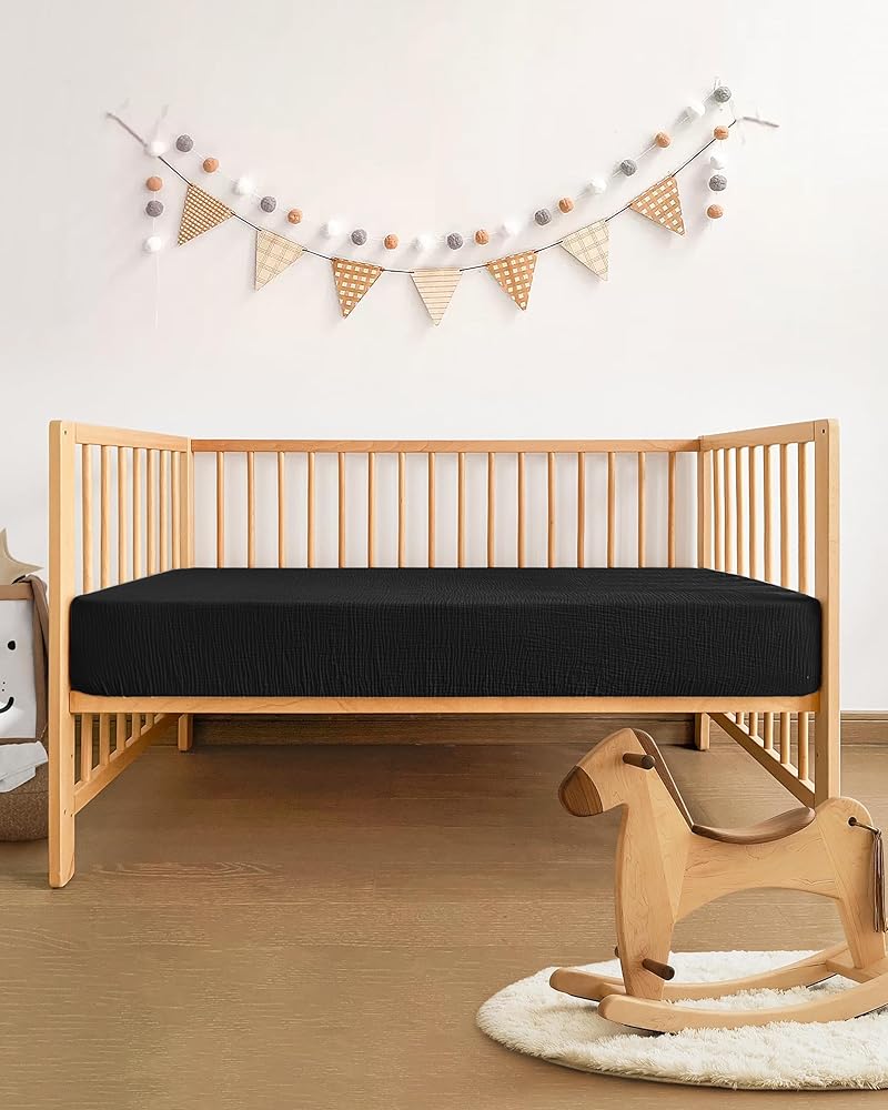 Pro Goleem Muslin Crib Sheets for Boys and Girls, Soft Breathable Neutral Fitted Cotton Baby Bed Sheets for Standard Crib Mattress & Toddler Mattress (52"x28"), 1 Pack (Black)