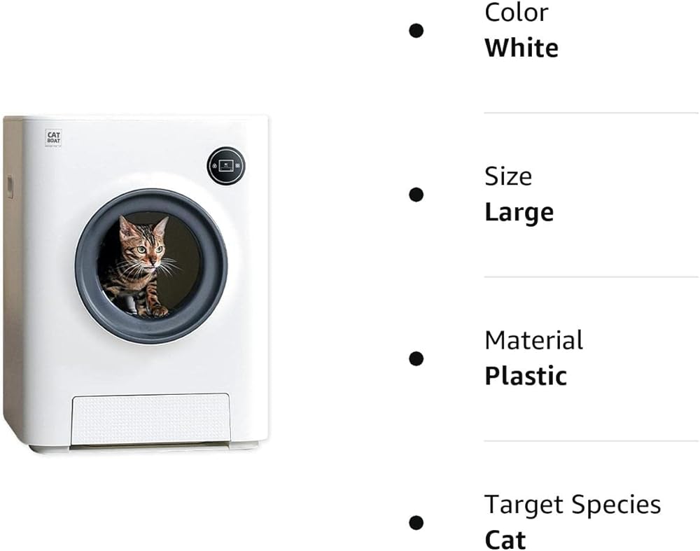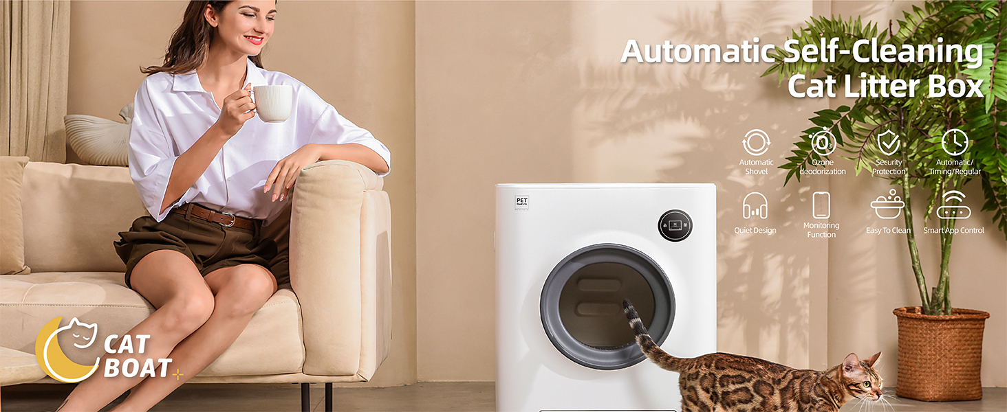 Quiet & Odor Removal: Scooping cat litter by hand is smelly, Catboat self-cleaning cat litter box could relieve your doubts! Because it can remove odor by ozone and keep fresh at any time. Besides, it is less than 46db when working, and won't disturb your daily life. This automatic cat litter box supports all kinds of clumping cat litter on the market (except crystal cat litter).