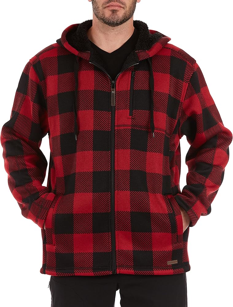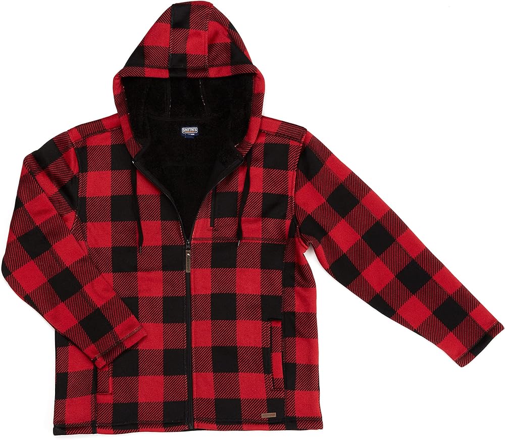 This Smith's Buffalo printed Sweater-Fleece jacket is a great comfortable jacket you will be reaching for again and again during the cooler months. Made of buffalo printed plaid sweater-fleece it is bonded with to super-soft butter-sherpa to keep you warm butt not stuffy. Featuring a zippered napoleon security pocket, seamed welt pockets, a three-piece hood for a better fit, this is a great anytime/anywhere jacket during the week or on the weekends.