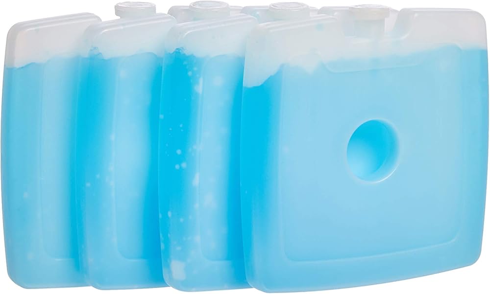 Amazon Basics Reusable Hard Sided Square Ice Pack, 4.75" X 4.75" X 0.5", Blue, Pack of 4