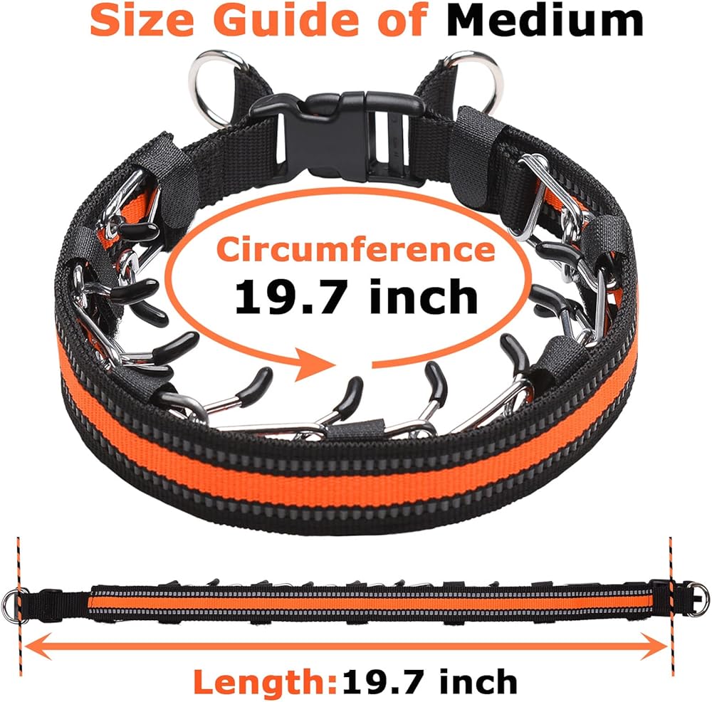 Prong Collar for Dogs, Reflective Covered Dog Spike Pinch Collar, Adjustable Dog Training Collar with Quick Release Buckle for Small Medium Large Dogs (M Size)