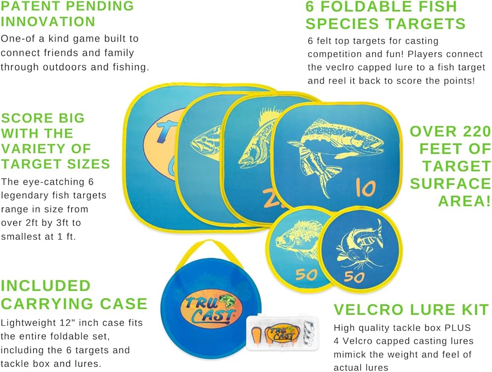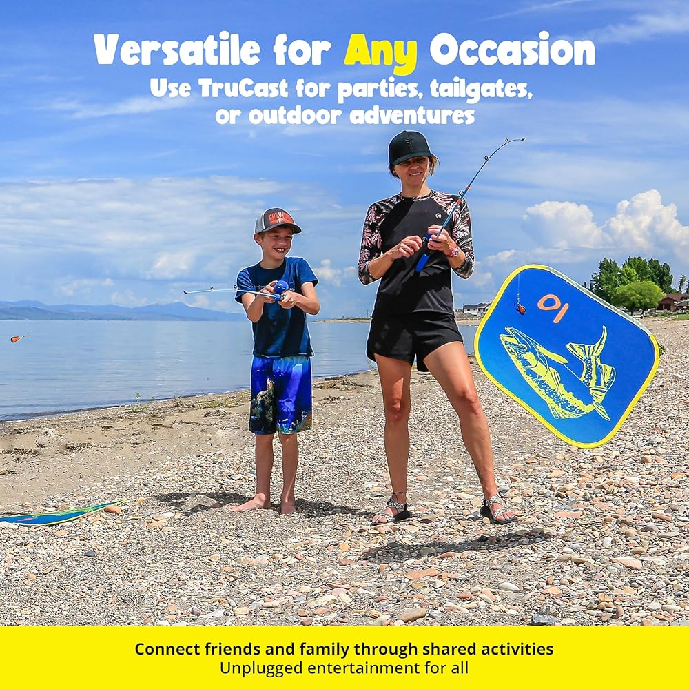 Portable and Easy to Set Up: Take the fishing fun wherever you go! TruCast Legendary Fish is designed to be light-weight and portable, making it perfect for backyard parties, camping trips, beach vacations, or tailgating events. The game is incredibly easy to set up, so you can start fishing in no time. The entire kit weighs less than 2 lbs and packs down to about the size of a frisbee.