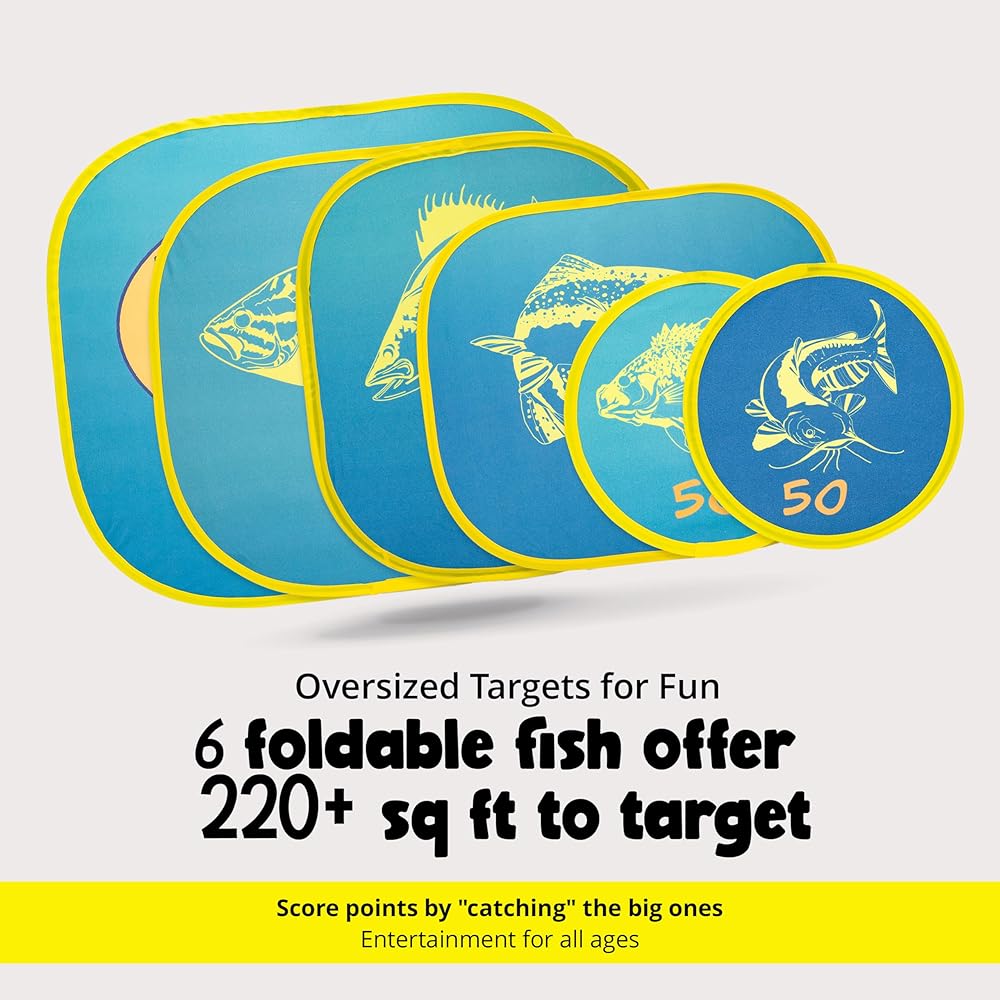 6 foldable oversized fish targets allow players to "catch" their fish and score points! Over 220 feet of surface area to target!
