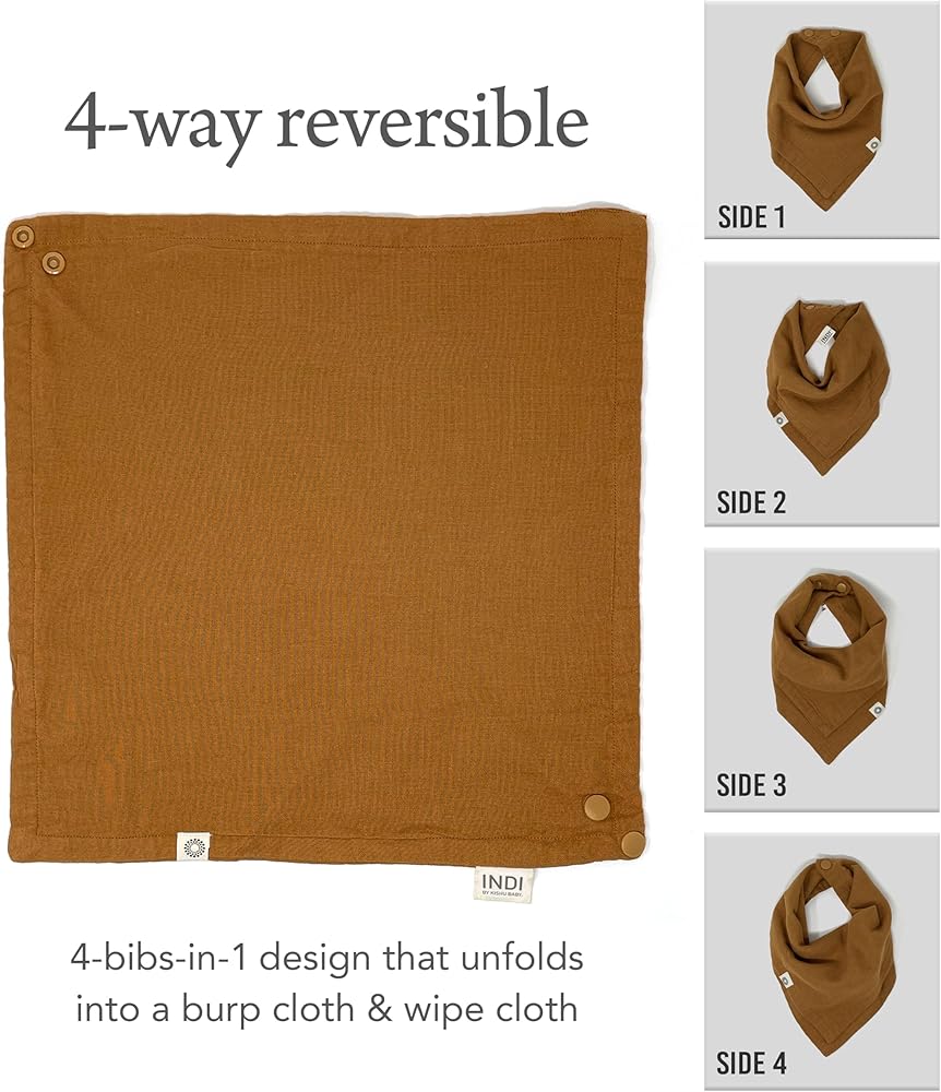 REVOLUTIONIZE YOUR BABY'S STYLE WITH OUR ORGANIC BANDANA BIBS - Get ready for a game-changer, mamas! Our amazing 4-way reversible, multi-use muslin baby bibs are here to make your life easier. Our organic bib set includes a total of five 4-way reversible bibs which is like getting 20 high quality bibs in one set! Unfolding into a perfect square, it's the ultimate modern baby bandana bib. Also use it as a super-convenient wipe cloth for those messy little hands & faces or as a trusty burp cloth!