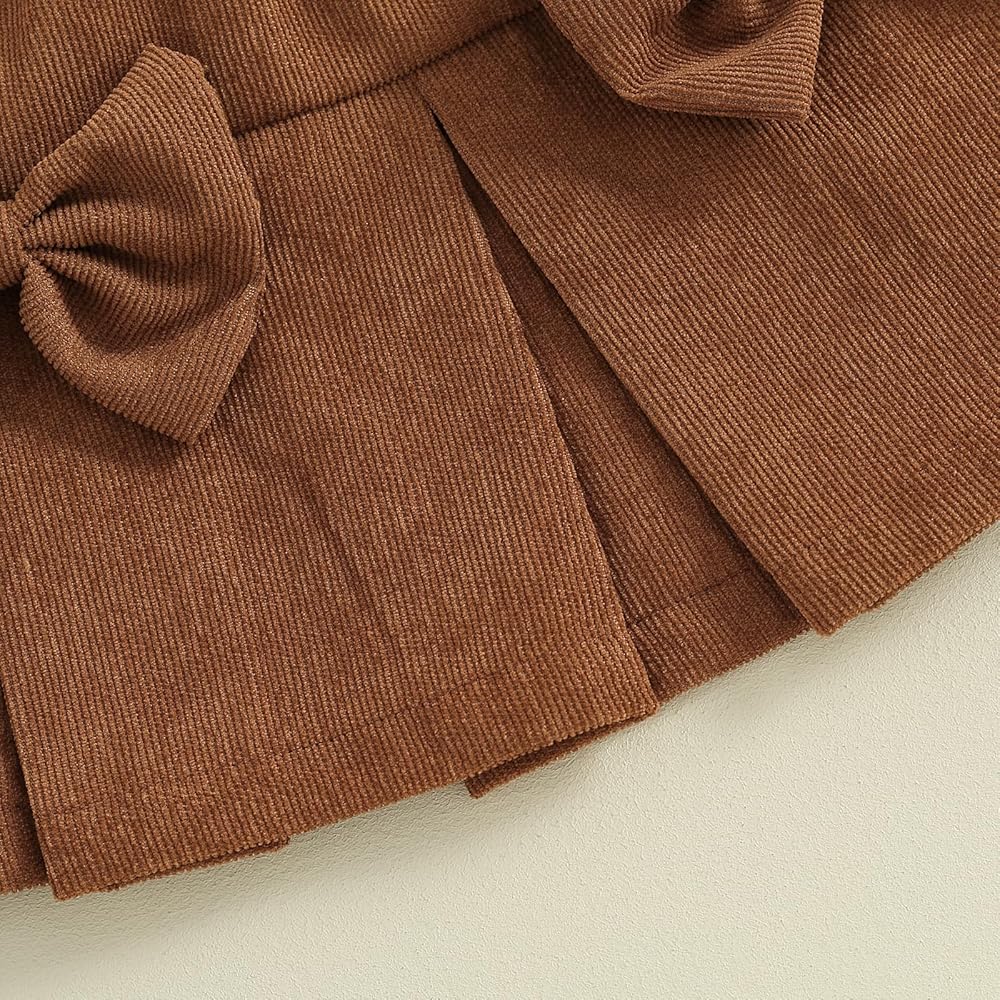 Toddler Baby Girl Fall Winter Outfits Turtleneck Long Sleeve Knit T-Shirt Tops + Plaid Mini Skirts Clothes Set